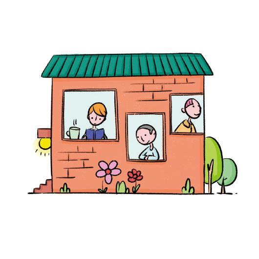한 집에 2~3명이 생활하고 1명이 1개의 방을 사용할 수 있습니다.